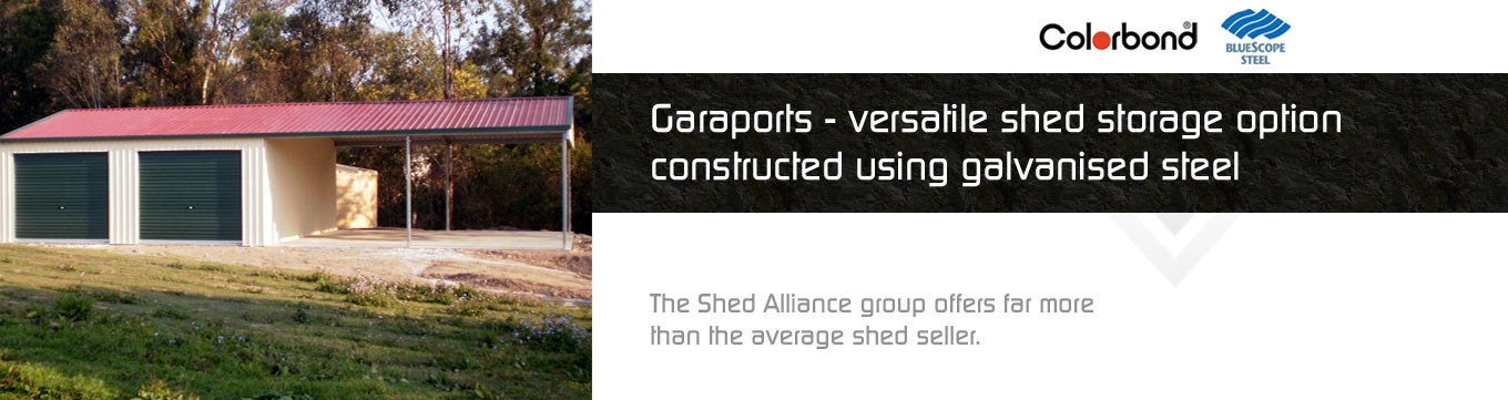 Shed’s Alliance supplies garaports from 3m wide to 24 m wide clear spans and wall heights to 6m. Standard roof pitches include 10, 15, 20 and 25 degrees.