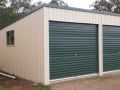 Our skillion sheds are available from 3m to 12m wide and up to 3.6m high at the low end of the building. Roof pitches are available in 5, 7.5 and 10 degrees. You can also add an awning to both sides of the building. Roller-doors can also be added to any side of the shed including the sloping side.